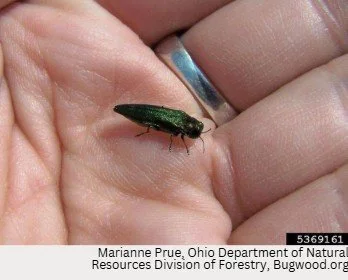 An invasive and highly destructive wood-boring beetle that kills only and all ash tree species. (Fraxinus spp.)