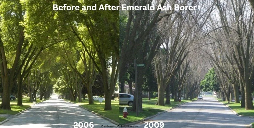 Within the first three years of EAB arriving in North America, Detroit, Michigan saw a 30% loss of their urban canopy and an increase in urban temperature of roughly 4 degrees celcius (Michigan State University, 2024).