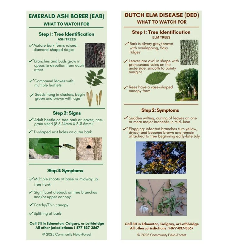 There is a helpful online tool created by municipal urban forest departments that can identify where city-owned ash trees are found in and near your neighbourhood. The links below will take you to these inventories developed by the City of Edmonton and the City of Calgary respectively.