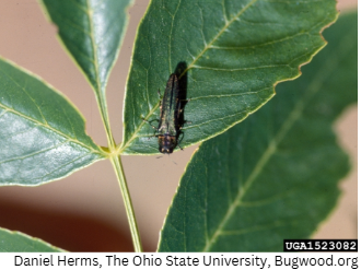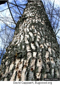 ReportD-shaped exit holes and/or beetleson leaves, bark, or flying nearby for immediate inspection.
