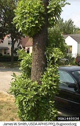 Epicormic shoots/new, thin twigs growing at base of tree and/or midway up tree trunk.