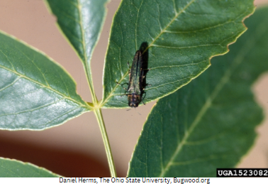 Adults emerge in late May with consistently warm temperatures, feed on ash leaves before reaching sexual maturity and mating begins in mid-June.